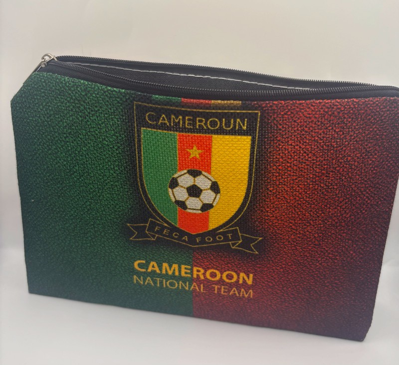Emporte un bout du Cameroun partout avec toi grâce à notre trousse de toilette aux couleurs vibrantes du vert, rouge et jaune ! Pratique, élégante et robuste, elle t’accompagne en voyage, à la salle de sport ou au quotidien.