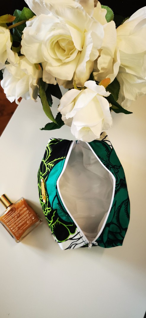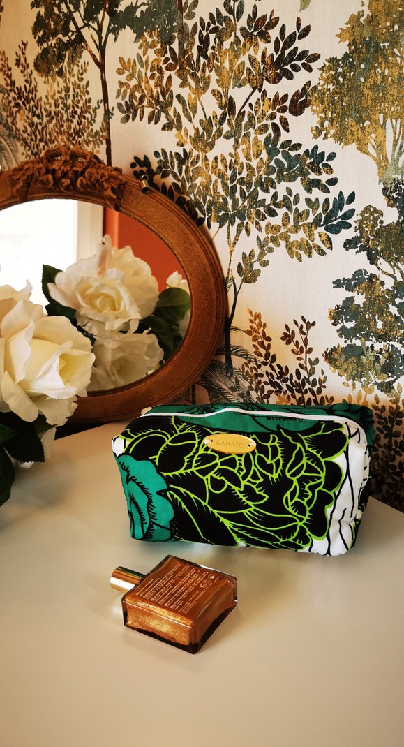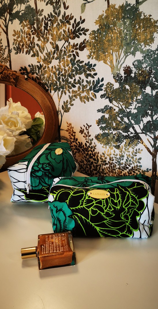Article fabriqué avec amour dans notre atelier. Pratique et élégante, notre trousse de toilette est idéale pour organiser vos essentiels au quotidien. Que ce soit pour ranger les accessoires de bébé, vos produits de beauté ou votre maquillage, elle s’adapte à tous vos besoins. Conçue avec des matières de qualité et des finitions soignées, elle trouvera facilement sa place dans votre salle de bain ou votre sac, pour vous accompagner partout avec style et praticité. Dimensions : Taille M : 18 cm x 10 cm x 8 cm Composition : Tissu imprimé 100% coton wax Rembourrage 100% polyester Oeko Tex classe 100 Doublure Tissu toile imperméable et ultra-résistant - Blanc Conseils d’entretien : Lavage en machine à 30°C cycle délicat, ne pas mettre au sèche-linge, ne pas repasser.