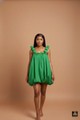 This playful and vibrant garment is a mini-length bubble dress that embodies fun and modern summer style, crafted from a lightweight, crepe fabric, which holds its shape beautifully and is rendered in a stunning, attention-grabbing shade of green. The dress features a square neckline that leads to its most distinctive feature, the thick shoulder straps are creatively adorned with large, matching fabric-covered spheres or balls, giving the piece a unique, sculptural, and whimsical touch. The body of the dress flows from the neckline into a voluminous, gathered silhouette that tapers slightly at the short hemline, creating the classic, flouncy 'bubble' effect. This piece is a bold, effortless statement that beautifully combines a relaxed fit with high-impact design details. This chic and spirited bubble dress is perfect for casual but stylish warm-weather occasions and summer leisure. It is an ideal choice for beach vacations, outdoor parties, poolside events, summer festivals, or casual daytime outings like brunch or shopping when you want a fun, statement look. Material: crepe Color: green