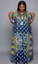 This Contemporary Geometric Kaftan is a striking fusion of traditional African textile arts and modern design, meticulously crafted from high-quality, breathable cotton that ensures a lightweight yet structured silhouette. The garment showcases a vibrant patchwork of hand-dyed Batik and Adire prints in deep sapphire, electric blue, and lime green, featuring intricate circular and petal-like motifs that create a dynamic visual energy. A sophisticated high-collared neckline is accented by a central vertical-striped panel with fringe detailing, adding a layer of tactile interest and refined craftsmanship to the modest, floor-length design. This versatile piece is an ideal choice for high-end cultural festivals, elegant outdoor garden parties, or luxury travel wear, offering a perfect balance of comfort and statement-making style. Whether you are attending a boutique art opening or a celebratory family gathering, this kaftan provides a regal and artistic presence that celebrates heritage with a modern edge.