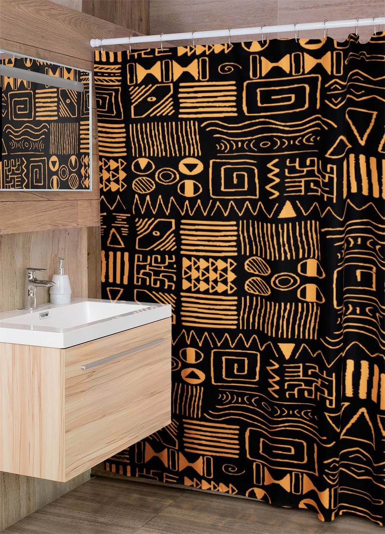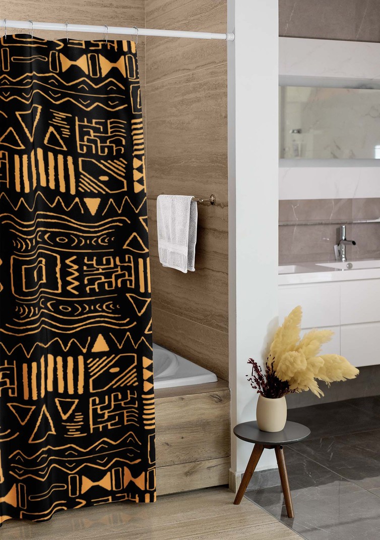Elevate your bathroom decor with our Unique African Print Shower Curtain in Gold and Black. Add a touch of adventure and risk-taking to your daily routine. With bold colors and intricate prints, this curtain is sure to inspire and challenge. Make a statement and bring a piece of Africa into your home.