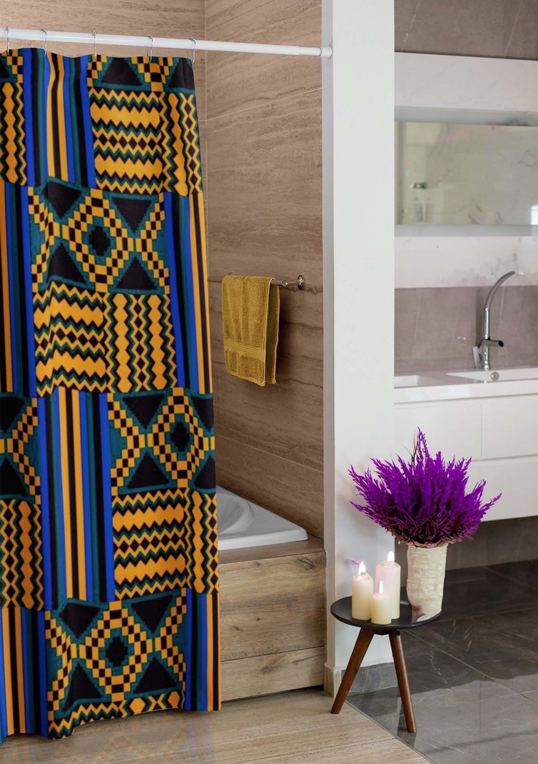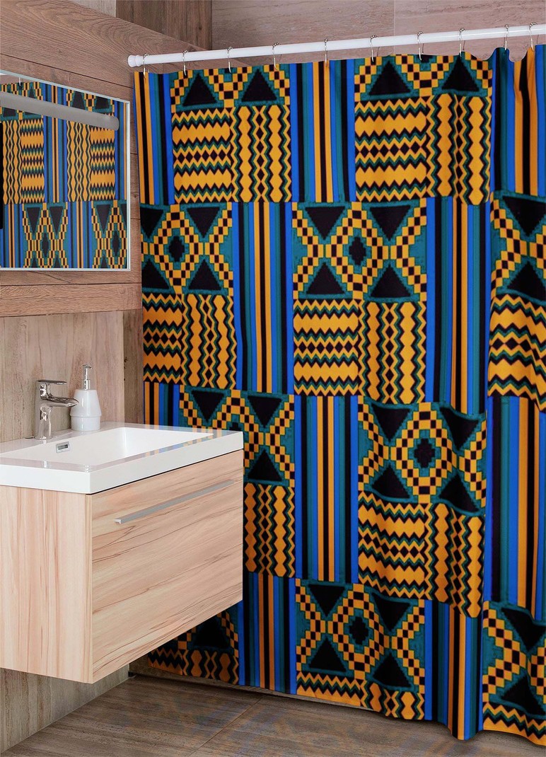 Experience the vibrancy of African culture with our Unique Shower Curtain Cultural Bathroom Decor Kente. Turn your bathroom into a dynamic space with this bold and colorful statement piece. Let this curtain awaken your adventurous spirit and add a touch of excitement to your daily routine.