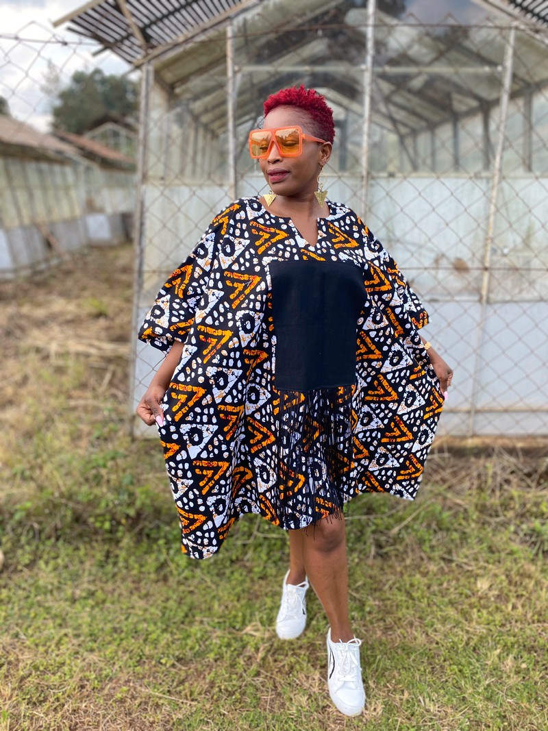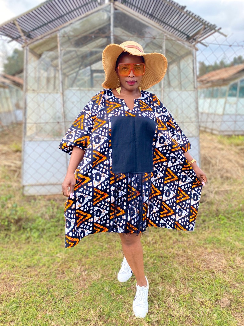 The Upendo Ankara boubou dress features a free size design and is perfect for any body size and shape. This dress is made in Kenya 🇰🇪 using locally and sustainably sourced Ankara Fabrics. The dress has pockets and fringe decorations at the front. The height can be made to one's preference. Occasion: wedding, special events, on the sunny days