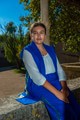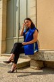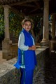 Ce modèle en Bleu Saphir s’illumine d’un empiècement en pagne Sénoufo ivoirien, pour une allure vibrante et racée.