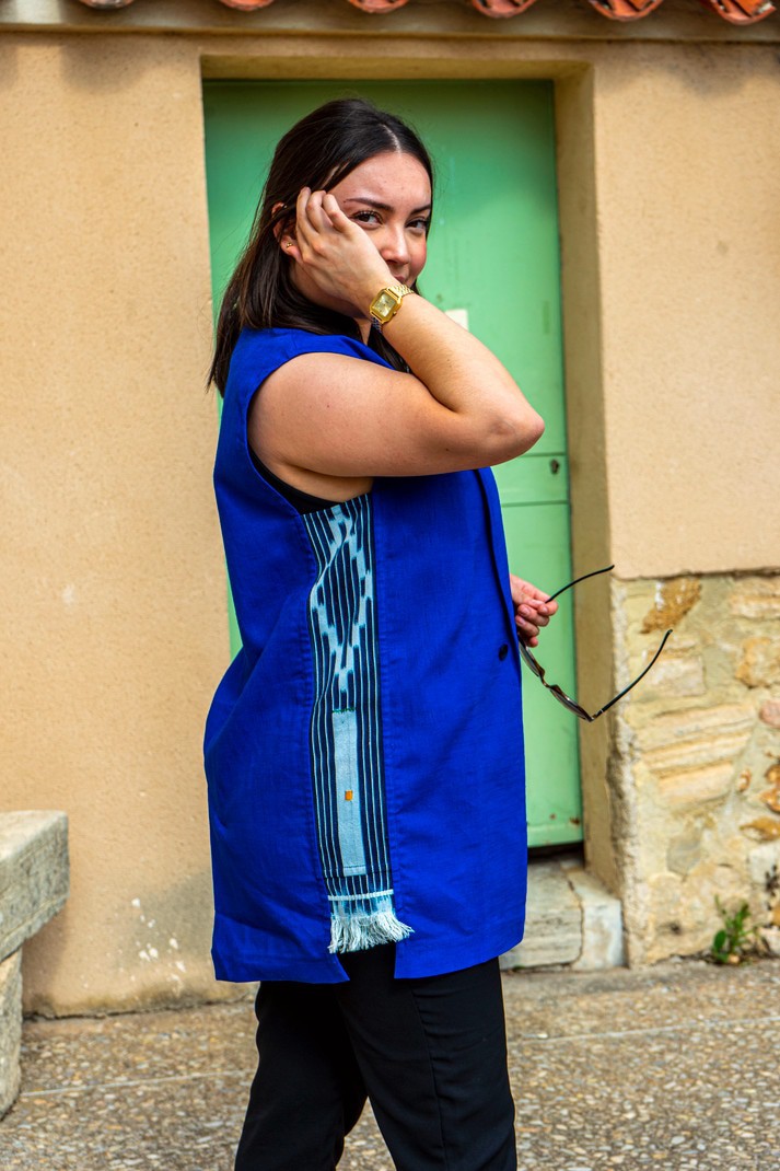 Veste Alizéa – Bleu Saphir Pagne Sénoufo