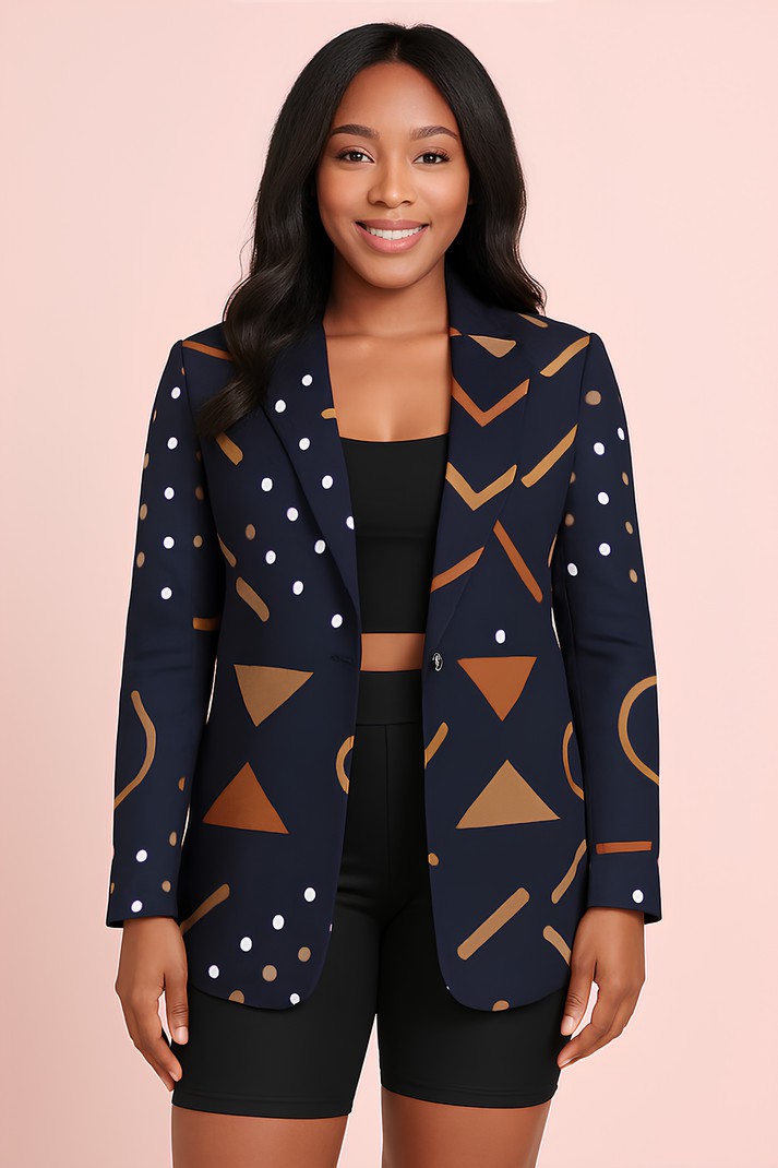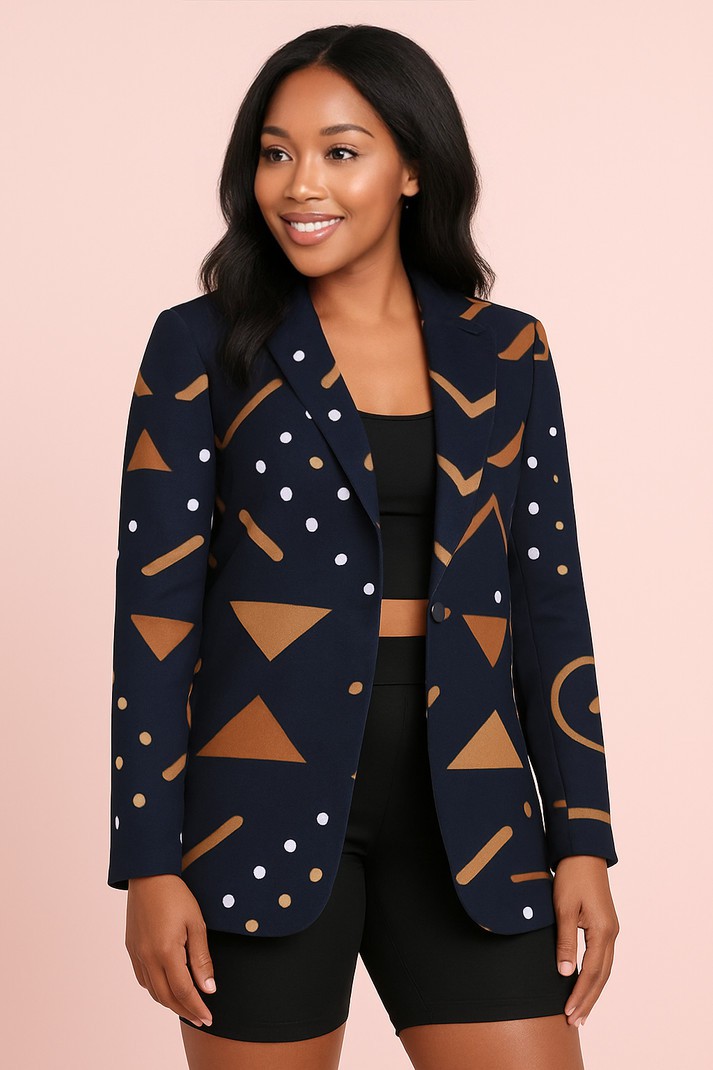 Add a bold touch of style to your wardrobe with this blazer, designed with an eye-catching geometric pattern that stands out in any setting. Whether you’re heading to the office, a dinner date, or a casual day out,