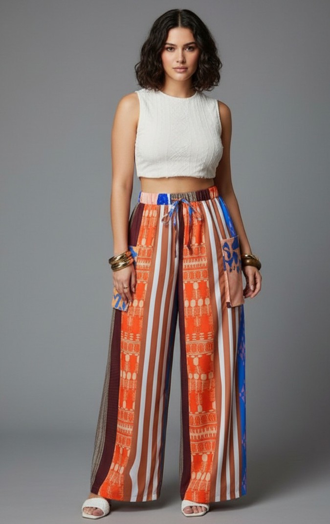 Step into style with our Vibrant Wide-Leg Palazzo Pants, the perfect blend of comfort and flair. These eye-catching pants feature a bold mix of colors and patterns, designed to make a statement while keeping you cool and comfortable.