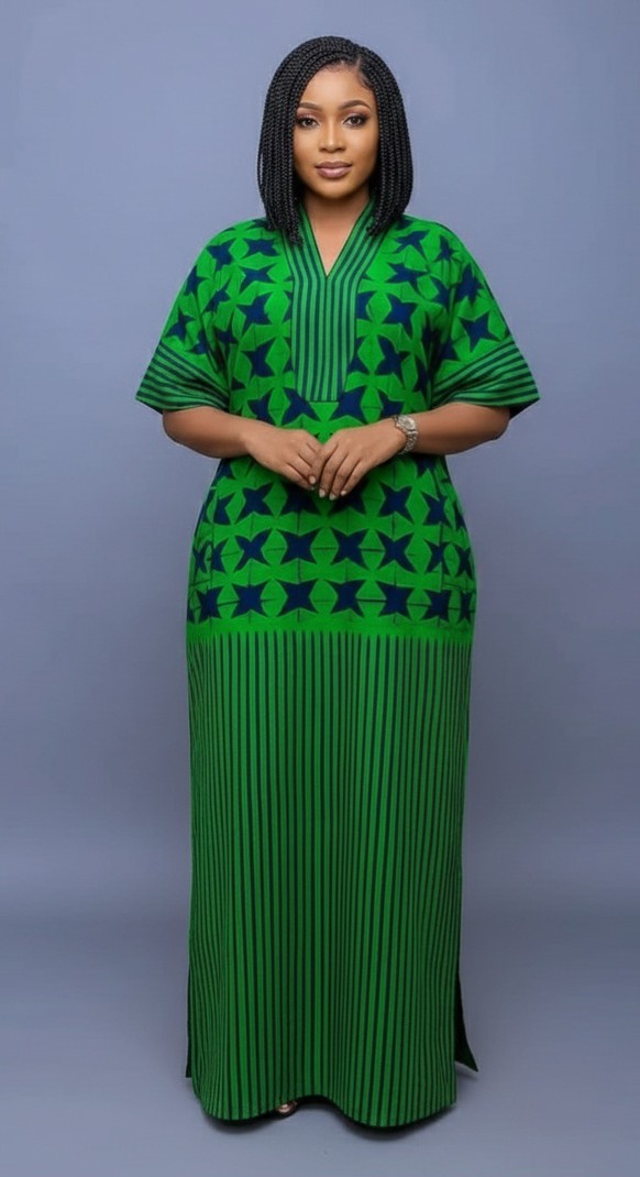Vibrant Women's Green Star Print Kaftan – Modern Elegance