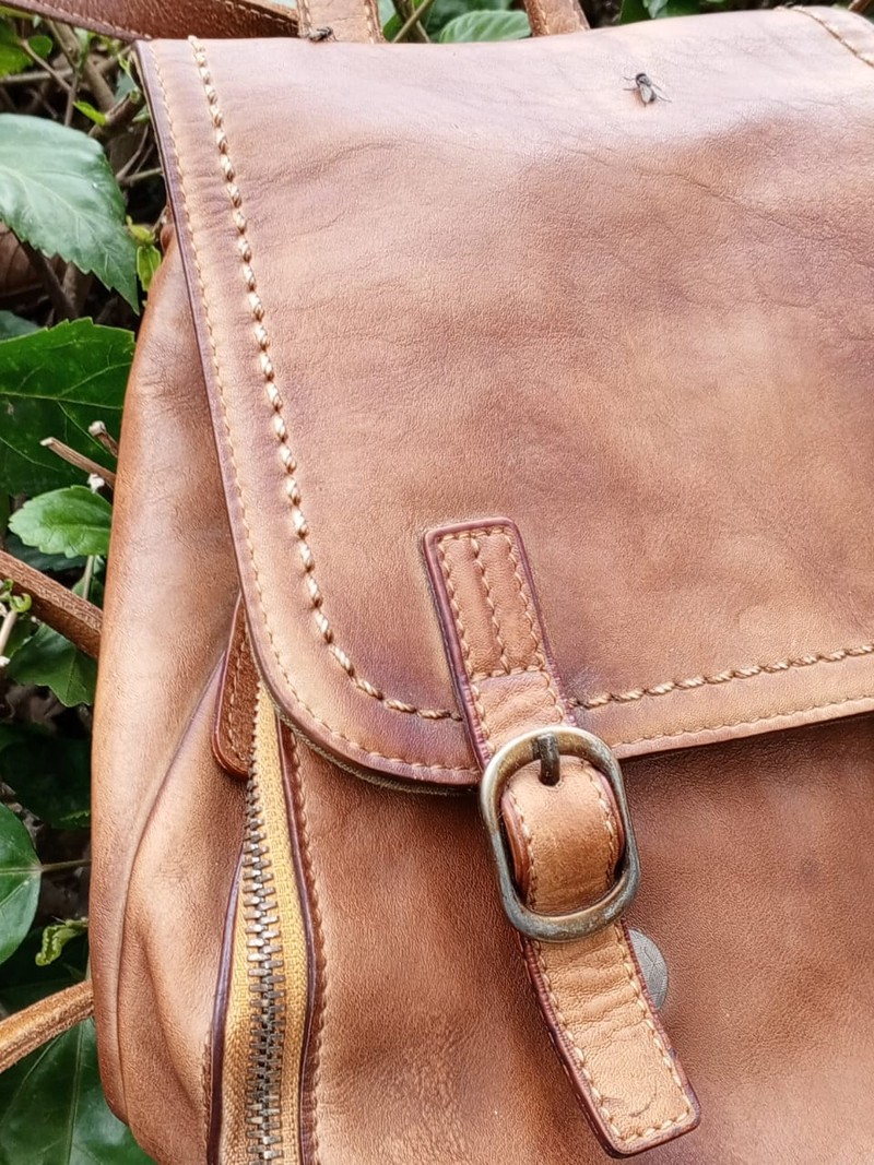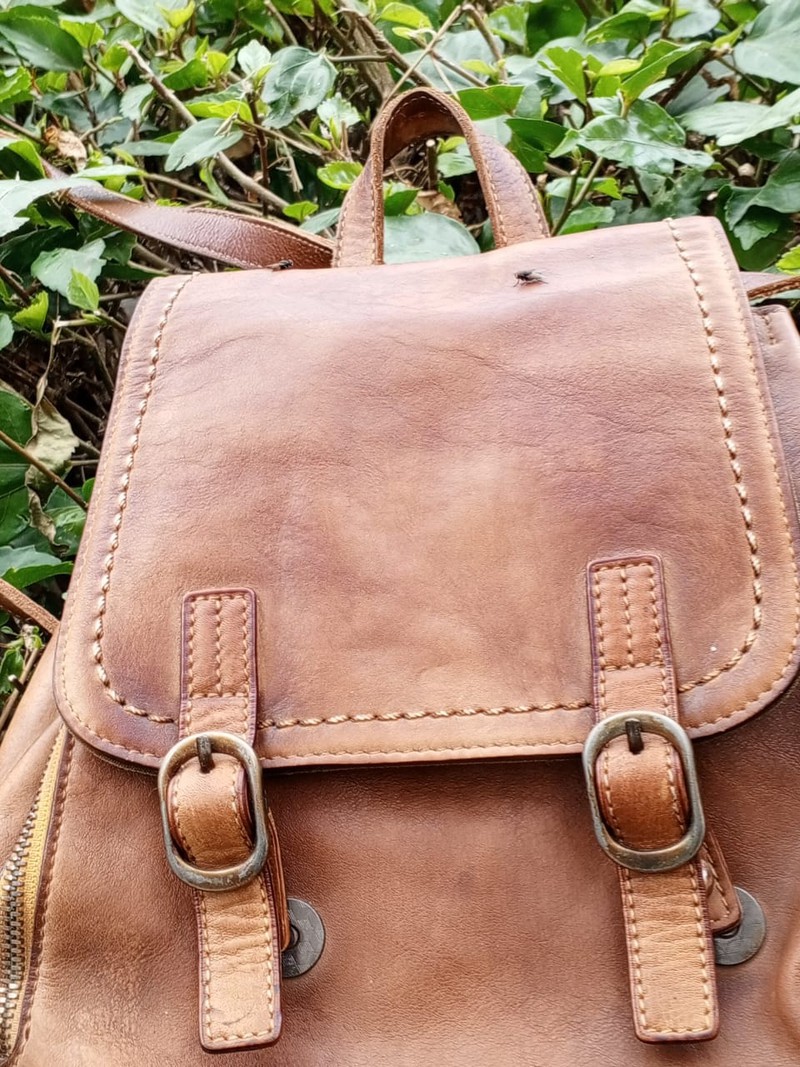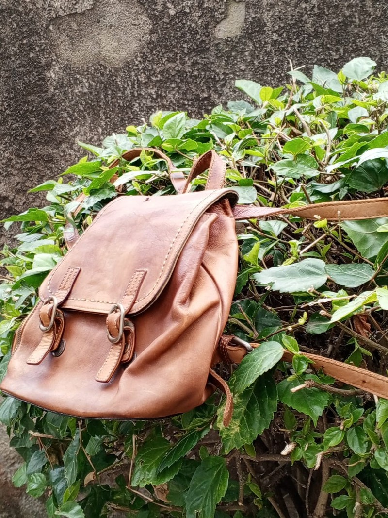 This vintage women's leather backpack from Green Burry is a timeless and practical accessory, perfect for everyday use. Crafted from genuine leather, it has a beautifully aged look with natural signs of wear that enhance its retro charm. The interior is lined with cotton and includes one zippered pocket and one open pocket, providing convenient storage while keeping your essentials organized. Designed for comfort, the padded leather shoulder straps are fully adjustable, ensuring a customized fit. Measuring 10.2” (26 cm) in length and 10.6” (27 cm) in height, with strap lengths exceeding 27.5” (70 cm), this mid-size backpack offers a balance of style and functionality. Made in Germany, this bag embodies quality craftsmanship and durability. A perfect choice for vintage lovers, it's an ideal sustainable gift or a stylish travel companion. Please note: All bags in this shop are vintage, meaning they are pre-owned and may show signs of age. If you are looking for a brand-new item, this may not be the right fit.