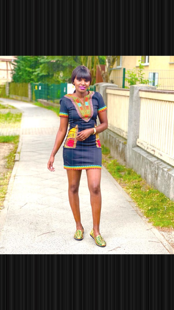 This pretty short black dress is made from dashiki print for detaik and stretch cotton fabric for comfortability.