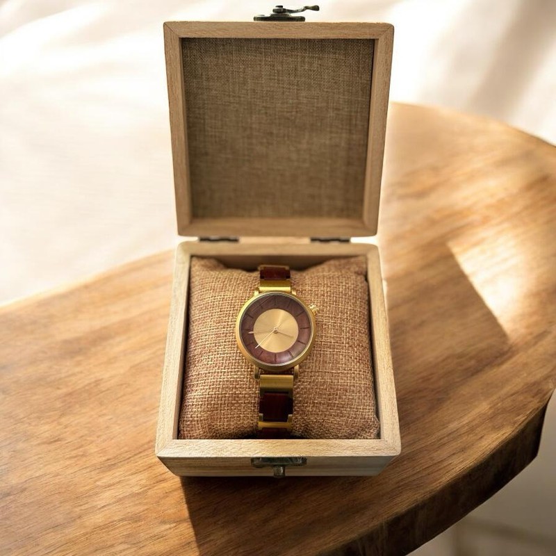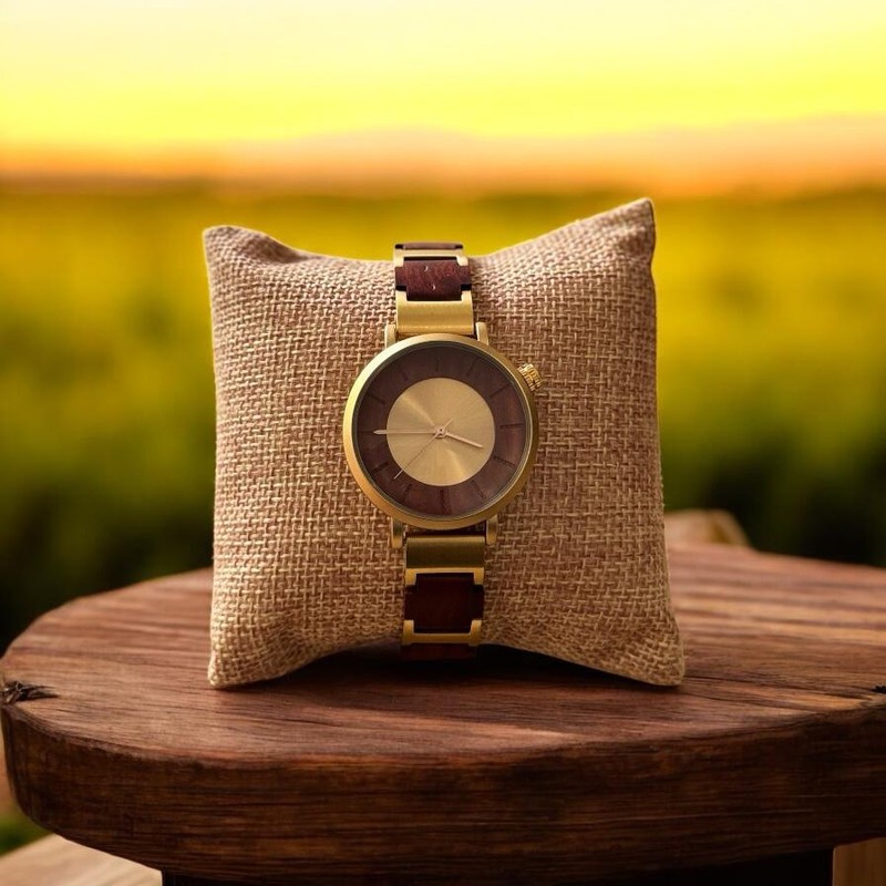 Montre élégante au bracelet mixte acier inoxydable et bois noble, avec un cadran bicolore où un cercle doré est délicatement entouré. Un modèle intemporel pour celles et ceux qui apprécient l’alliance du discret et des matières naturelles. Parfaite pour un style à la fois raffiné et responsable.