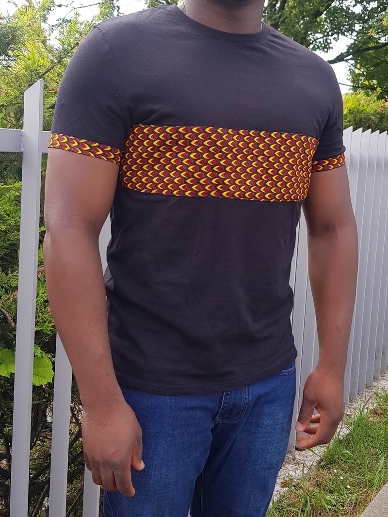 Très beau t-shirt fait main avec une touche de wax pour égayer vos tenues cet été !