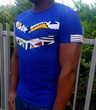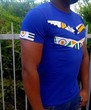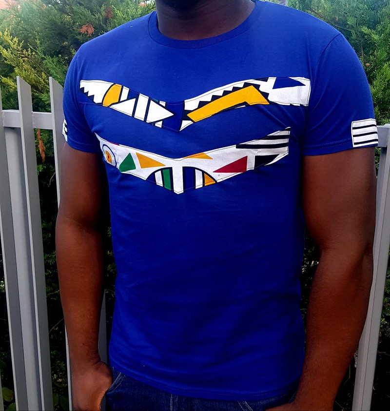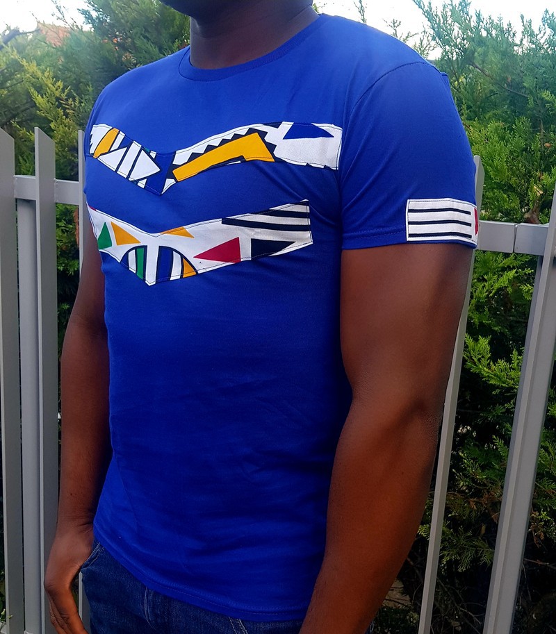 Tres beau tshirt bleu royal avec une touche de wax fait main,