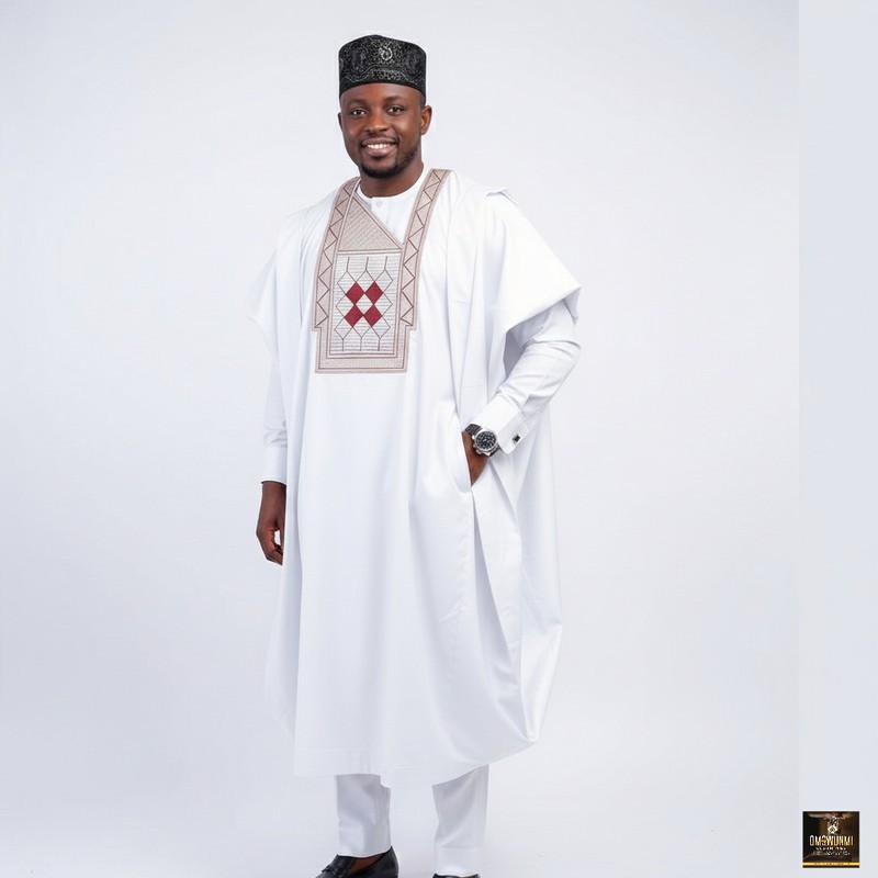 White Agbada set with cap