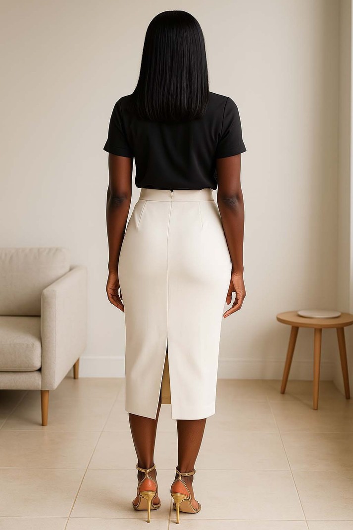 Discover the perfect blend of comfort and style with our Midi Crepe Cotton Straight Skirt in white. Made from soft, breathable crepe cotton, this skirt offers a flattering straight fit that enhances your silhouette. Its versatile design makes it ideal for both professional settings and casual outings, ensuring you look effortlessly chic wherever you go. Add this timeless piece to your wardrobe and enjoy endless styling possibilities.