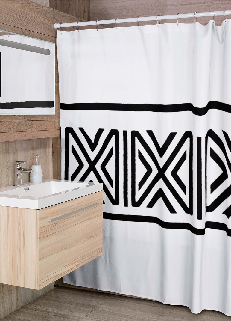 Elevate your bathroom with our Chic Decor White Shower curtain featuring a bold black zigzag pattern! This curtain adds a touch of edge and adventure to your daily routine! Don't settle for a mundane bathroom - take a risk and add some flair!