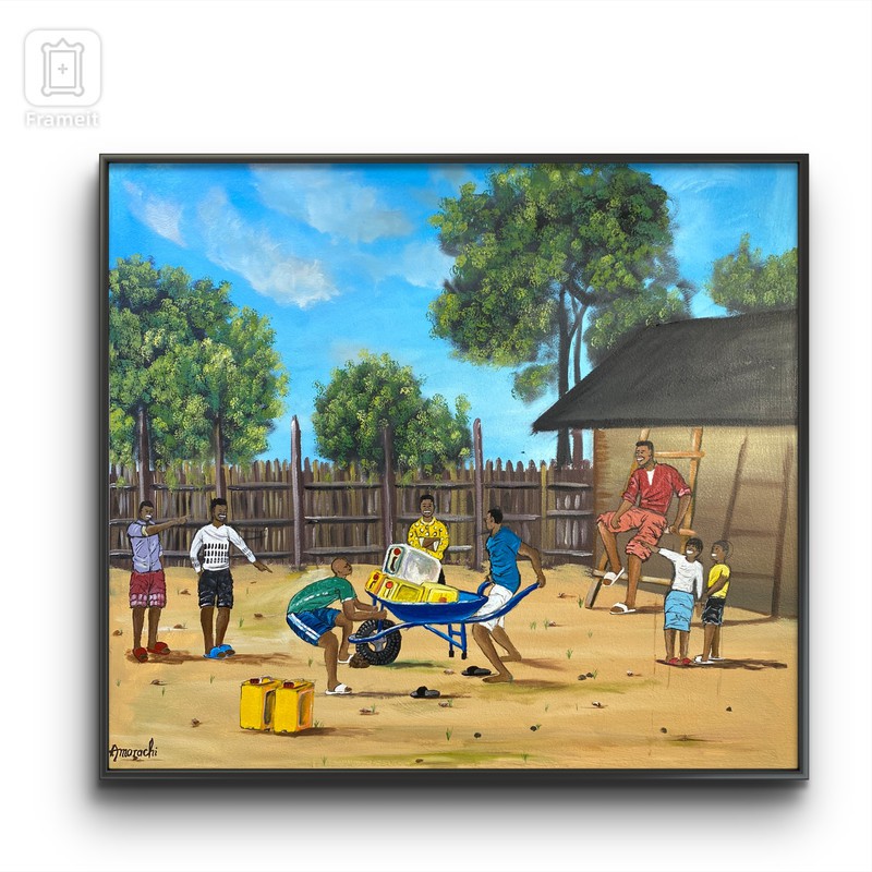 Who is a true friend? A true friend is someone you trust and enjoy spending time with, who supports you during tough times, even when everyone else has abandoned you. As depicted in the painting, the man pushing a wheelbarrow filled with heavy gallons, symbolizing his hard times, tried to seek help from others but was instead mocked. However, when he reached out to his friend, he received immediate assistance, despite his friend's own problems, represented by the gallons on the floor. His friend encouraged him to ignore those who mocked him and continued to support him, even when faced with ridicule. Many of us have met such true friends, but due to misunderstandings, we may have let them go. In conclusion, when you meet friends who stand by you during your worst days, cherish them, as they are rare. *This is a high quality art print. * it is not framed, you can frame it to your taste * size: 54cm × 48cm