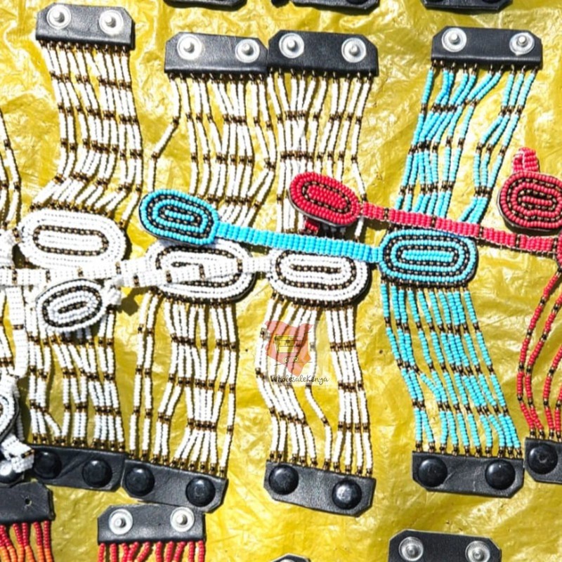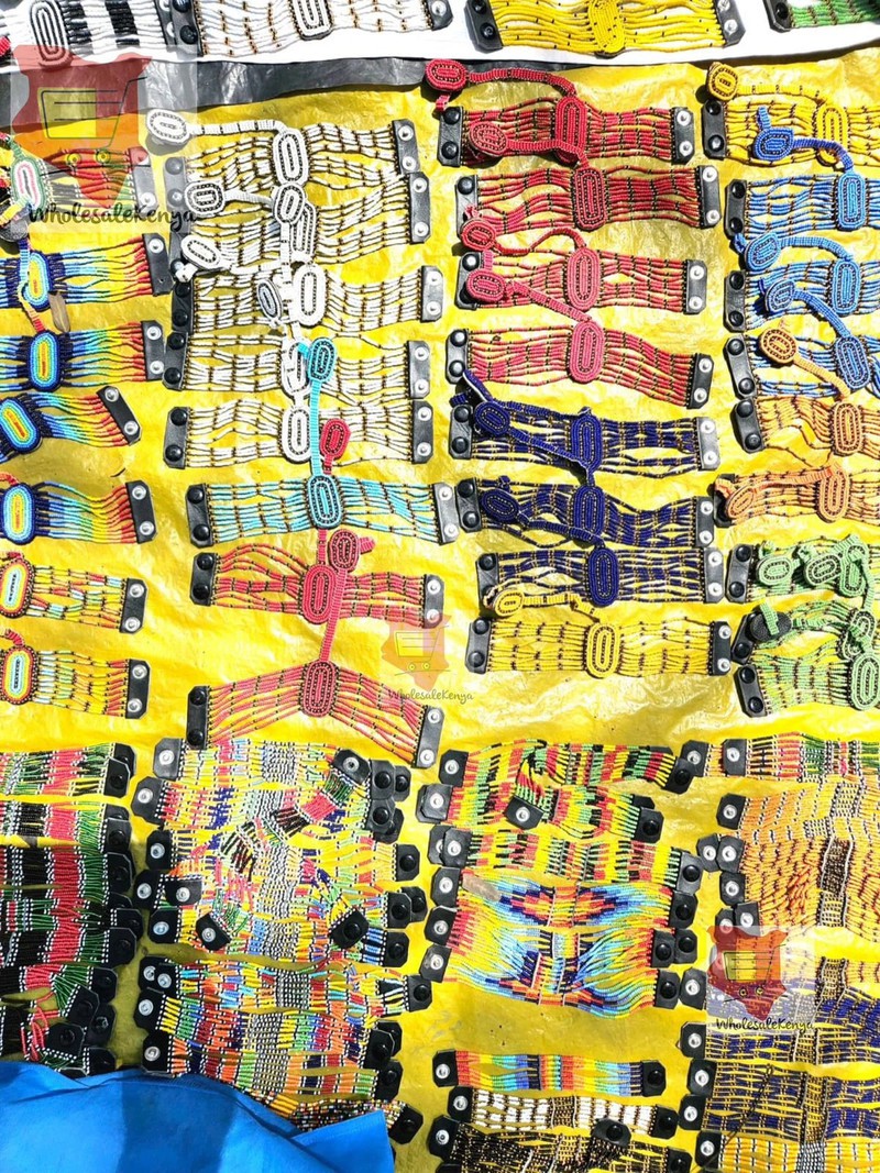 50 On sale Wholesale Beaded Masai Bracelet that has a ring attached to it.
