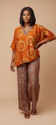 Women’s African Print Two-Piece Kaftan Set – Orange Batik Top & Wide-Leg Pants | Handmade Ankara Lounge Wear