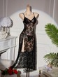 Sexy Sheer Mesh Slip Dress Set with Lace Trim - V-Neck, Thin Straps, Floral Pattern, All-Season Wear for Adults, Intimate Apparel