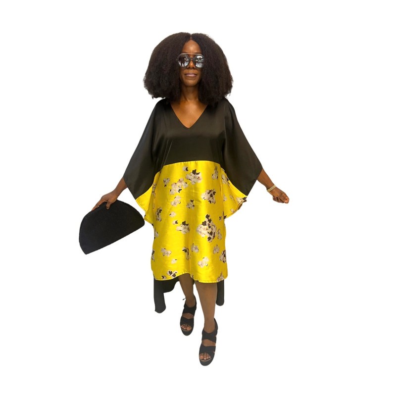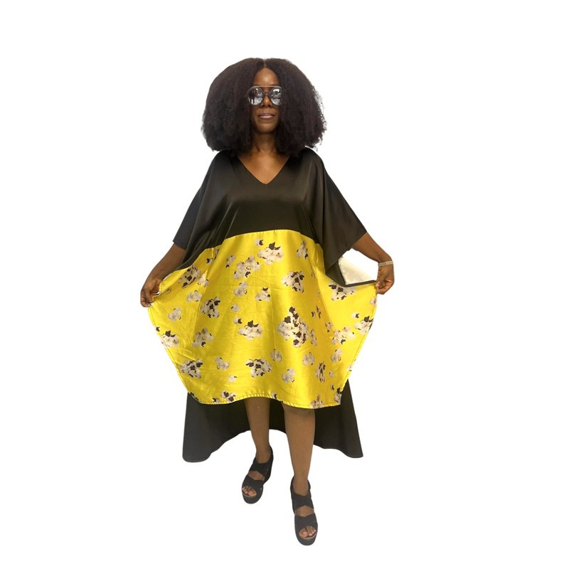 Yellow and Black Kaftan Dress Perfect for a casual or dressy affair Its Elegant and vibrant Fabric: Polyester Fabric care: Dry Clean Or Handwash only Produced in a pest, smoke & dust free environment. Please note that measurements in the size guide are general and a custom order can be made by sending the following measurements: • Bust (Around the bust under the arm. Should be comfortably free) • Waist • Shoulder (from one shoulder bone across your nape to the other shoulder bone) • Hips (Around the widest part of your hip) • Length (From your shoulder as long as preferred)