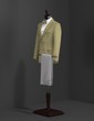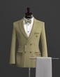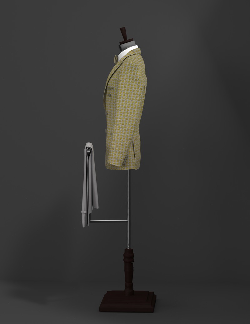 YELLOW FLOWER TEXTURED JACQUARD DOUBLE BREASTED SUIT DETAILED WITH A WHITE VELVET.