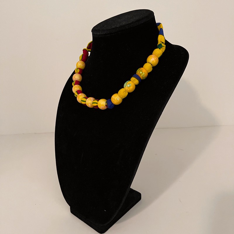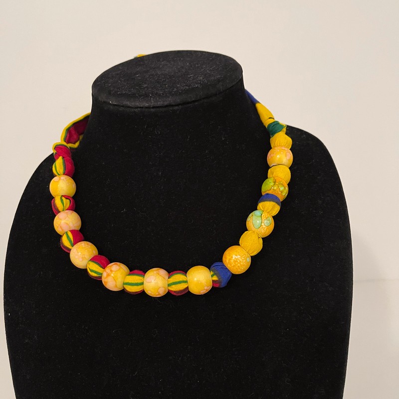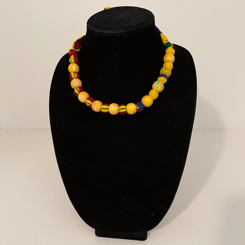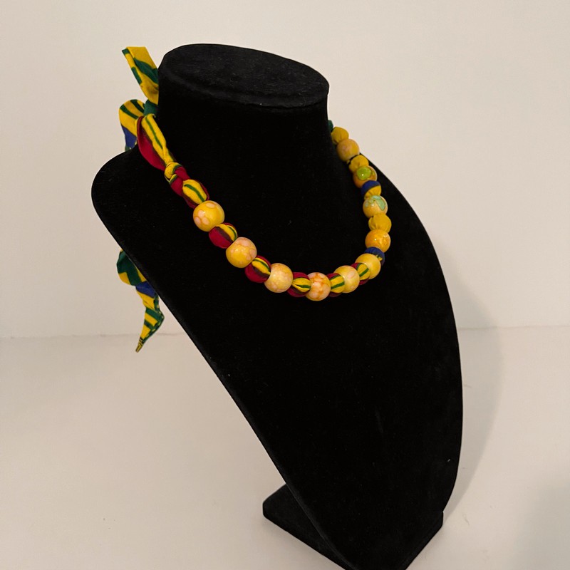 Yellow multicolor African print Ankara cotton beaded necklace