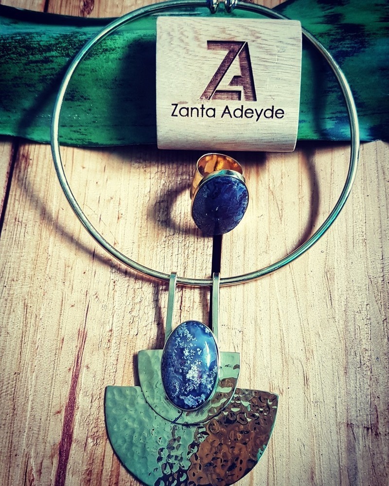 L'ensemble Zanta a un tour de cou en laiton et une bague avec des pierres d'agate ... idéal pour le look et les occasions de tous les jours ...