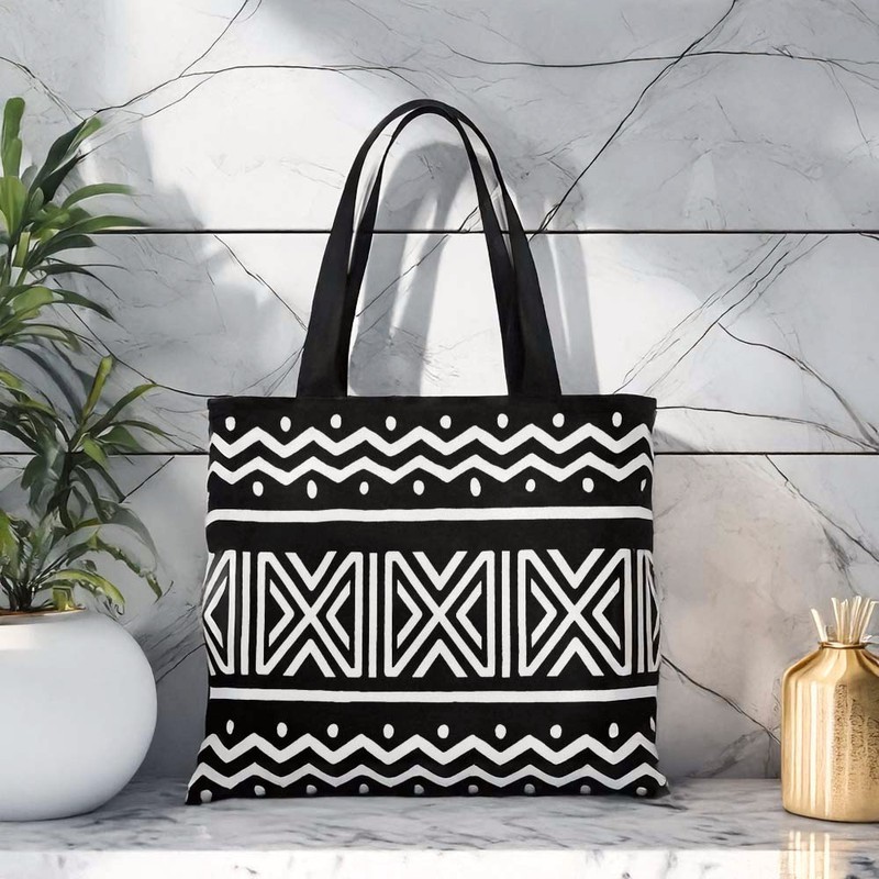 This bold Zigzag Black & White Tote Bag combines African prints and ethnic bohemian fashion. With a large capacity, it is perfect for adventurous souls who value style and functionality. Stand out from the crowd and take risks with this unique tote bag!