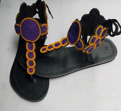 Sandales africaines | Cuir et perles Masai, tongs wax